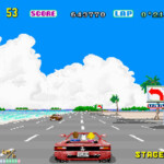 By visiting an arcade in the late eighties, you would find a technology clash. On one side, the first attempts of fully polygonal games like Winning Run on Namco System 21 “Polygonizer”, or Atari’s Hard Drivin’. On the other side, the 2d technology to simulate a 3d environment was at peak: with hardware accelerators like the AM2 Super Scaler, masterpieces like Hang-On and OutRun were possible.