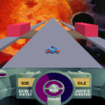 Our main source of inspiration, Skyroads, came out a few years later (1993), and featured a mixed approach: a 2d spaceship viewed in third person would move into a polygonal 3d environment.